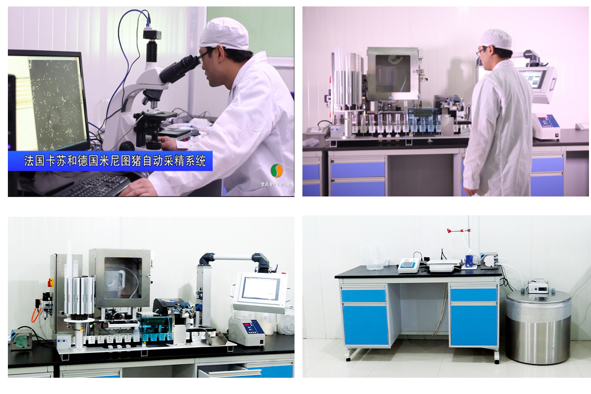 特色:從法國卡蘇、德國米尼圖公司引進(jìn)了先進(jìn)的豬自動采精設(shè)備;自動采精使環(huán)境中細(xì)菌和雜質(zhì)對精液的污染程度降低90%,提高了精液品質(zhì);公豬站采用HACCP質(zhì)量控制體系,配備完善的精液檢測、稀釋、分裝、保存、運(yùn)輸?shù)仍O(shè)備,定期監(jiān)測公豬健康狀況、精液品質(zhì)狀況,確保出站的每份精液均符合國家質(zhì)量標(biāo)準(zhǔn),有效期72小時(shí)以上。