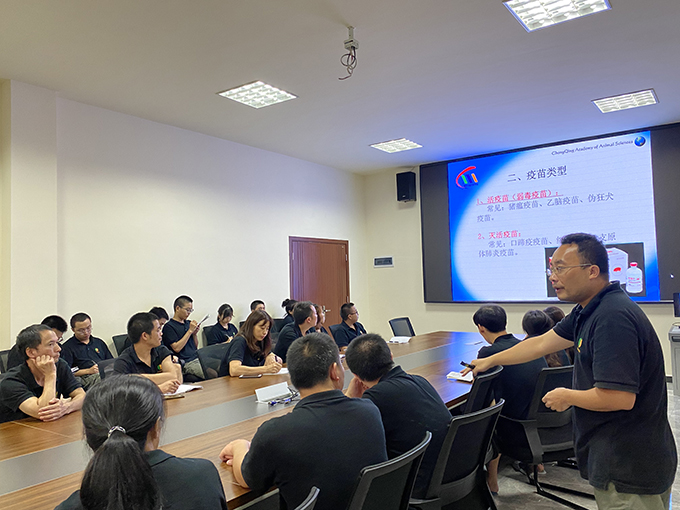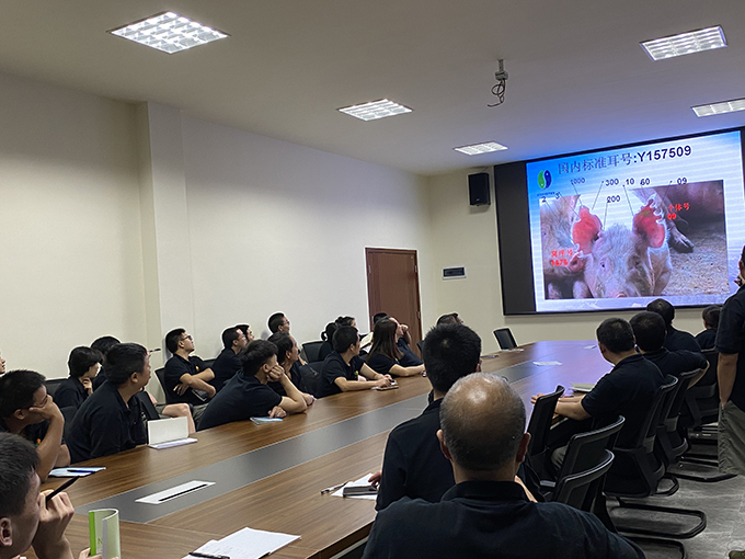 培訓(xùn)會上,基地場長邱進杰就疫苗的分類、運輸、管理和使用,肌肉注射技術(shù),國家通用標(biāo)準(zhǔn)耳缺識別方法等方面進行了全面、細致的講解。特別對疫苗保存、稀釋和使用方法,注射針頭的合理選擇、注射部位科學(xué)確認(rèn)等方面的操作技術(shù)及注意事項作了重點介紹?;丶夹g(shù)指導(dǎo)、生物安全專家羅宗剛博士對培訓(xùn)內(nèi)容有針對性地作補充和總結(jié),并提出了相關(guān)管理要求。培訓(xùn)會上,參訓(xùn)員工還就國際通用耳缺識別方法等方面進行了互動和現(xiàn)場模擬識別,培訓(xùn)達到了良好的預(yù)期效果。