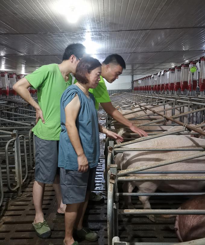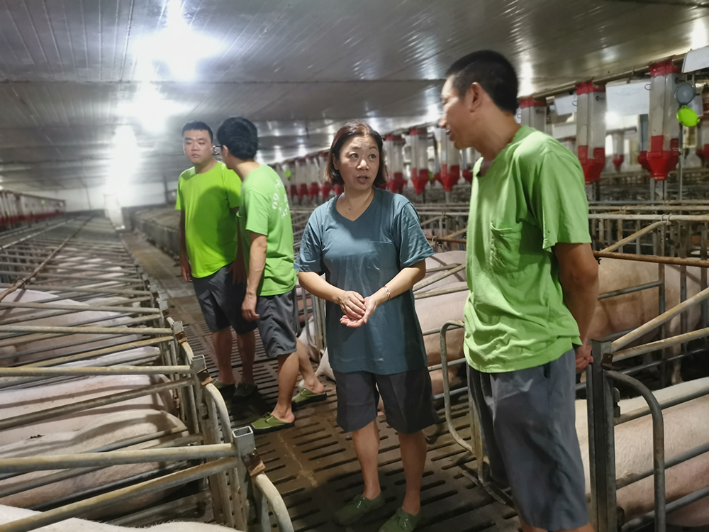 7月25日,董事長王藜在副總經(jīng)理陳奕名的陪同下,到原種場調(diào)研指導(dǎo)工作。董事長聽取了蒲強(qiáng)場長關(guān)于原種場生產(chǎn)管理、人員配置、后勤保障、設(shè)備設(shè)施維護(hù)等方面的工作情況匯報;查看了員工生活區(qū)、宿舍、食堂等情況;進(jìn)入養(yǎng)殖場內(nèi),先后到配懷舍、保育舍、生長舍等圈舍,仔細(xì)查看設(shè)備的維護(hù)、豬只的飼喂和生長、員工的工作狀態(tài)等情況;認(rèn)真了解原種場存在的問題和困難;聽取員工對原種場工作的意見和建議。