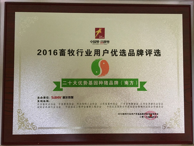 在該次會(huì)議中的2016畜牧行業(yè)用戶優(yōu)評(píng)品牌評(píng)選活動(dòng)中,重慶69獲得了“二十大優(yōu)勢(shì)基因種豬品牌(南方)“。
