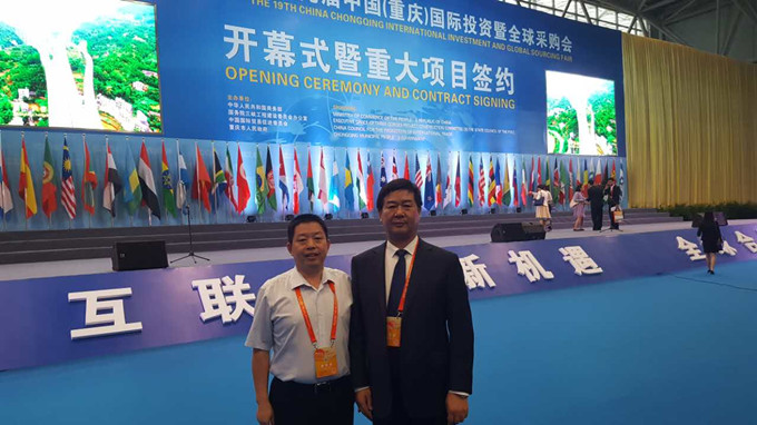 上海祥欣畜禽有限公司嚴國祥董事長、重慶69羅云總經(jīng)理在簽約會場合影