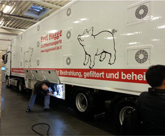 16日,考察團(tuán)經(jīng)德國(guó)邊境,進(jìn)入丹麥,考察了位于丹麥邊境上的大型卡車自動(dòng)清洗站。官方人員現(xiàn)場(chǎng)檢查、清洗進(jìn)入國(guó)境內(nèi)的運(yùn)豬車,采取嚴(yán)格消毒準(zhǔn)入制度。這種嚴(yán)格的生物安全處理措施非常值得國(guó)內(nèi)同行借鑒學(xué)習(xí)。